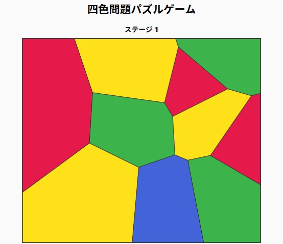 四色問題を、シンプルな塗分けパズルゲームにした無料のブラウザゲームです。