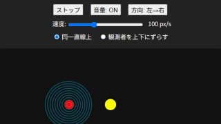サイトツール ドップラー効果webシミュレーション(サウンドつき)-救急車の音程変化が体験できる! 音源が移動するときに起こる「ドップラー効果」のシミュレーションをブラウザ上で実行し、視覚的かつ聴覚的に体験できるサイトツールです。上の埋め込み内でも使えますが、うまく動かない・大きなページで使いたいというときは、元のページへ(新しいタブで開... 2025.09.16 サイトツール