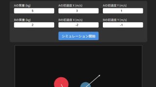 サイトツール 運動量保存則webシミュレーション-平面での運動量がわかる!パラメータ変更も可能! 平面でも運動量保存則のシミュレーションをウェブ上で実行し、運動量が保存されている様子を観測できる無料サイトツールです。上の埋め込み内でも使えますが、うまく動かない・大きなページで使いたいというときは、元のページへ(新しいタブで開きます)。運... 2025.09.20 サイトツール