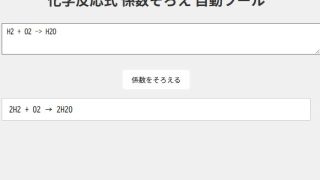 サイトツール 化学式の係数揃え 自動サイトツール-コピペOK!ボタンを押すだけ! 化学式の係数揃えをウェブ上で自動でやってくれるサイトツールです。上の埋め込み内でも使えますが、うまく動かない・大きなページで使いたいというときは、元の化学式係数揃え自動ツールページへ(新しいタブで開きます)。化学式の係数揃え 自動ツールの特... 2025.09.18 サイトツール