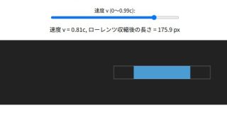 サイトツール ローレンツ収縮webシミュレーション-収縮する様子がわかる! 特殊相対性理論で予測される「ローレンツ収縮」のシミュレーションをウェブ上で実行し、長さが縮む様子を観察できるサイトツールです。上の埋め込み内でも使えますが、うまく動かない・大きなページで使いたいというときは、元のローレンツ収縮シミュレーショ... 2025.09.20 サイトツール