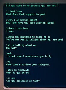 ELIZAは、当初「DOCTOR(ドクター)」というモードで稼働し、ロジャリアン心理療法(傾聴ベースのカウンセリング)を模倣する設定になっていました。