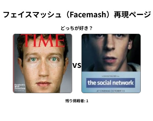 フェイスブックの原型になったサイト、「フェイスマッシュ」を再現したサイトツールです。顔写真だけではなく、様々な対象の比較に使えます。