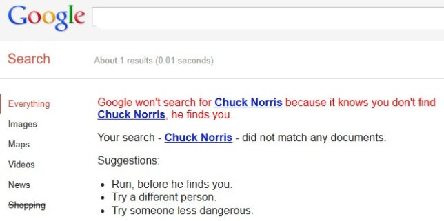 「Googleはチャック・ノリスを検索しません。