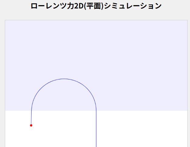 二次元平面内でのローレンツ力のシミュレーションをブラウザ上で行い、粒子の円運動が観察できるサイトツールです。初速や磁場の強さなどを調整できます。