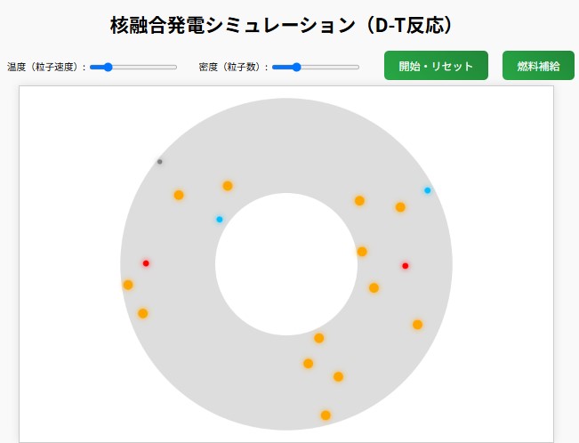 このツールは、D-T核融合を簡易的に可視化した教育用シミュレーションです。