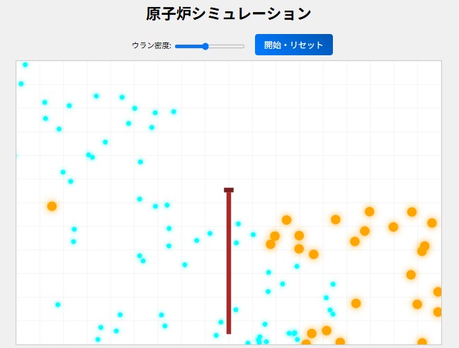 このシミュレーションを使うと、原子力発電の基本原理や連鎖反応、制御棒による安全管理の仕組みを視覚的に学習できます。