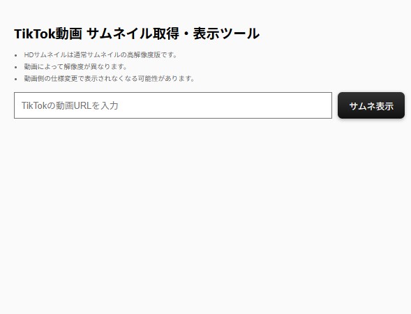 このツールは、TikTokの動画URLを入力するだけで、その動画に使用されているサムネイル画像を取得し、表示できるWebツールです。